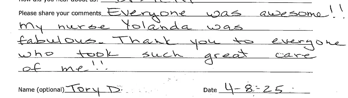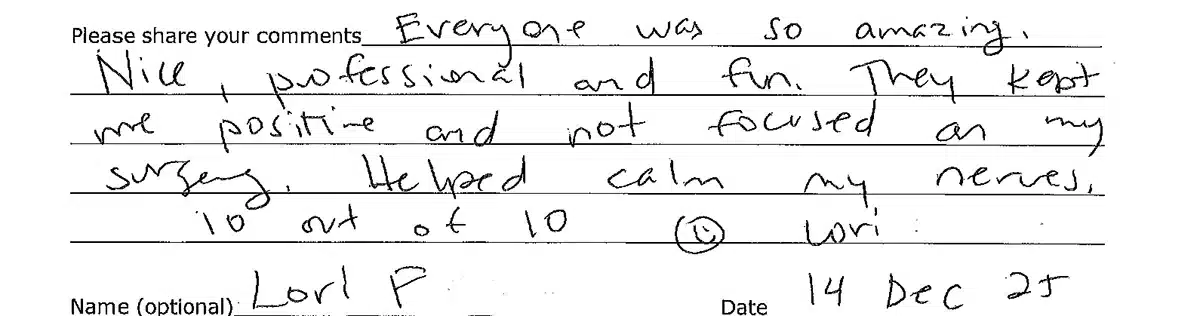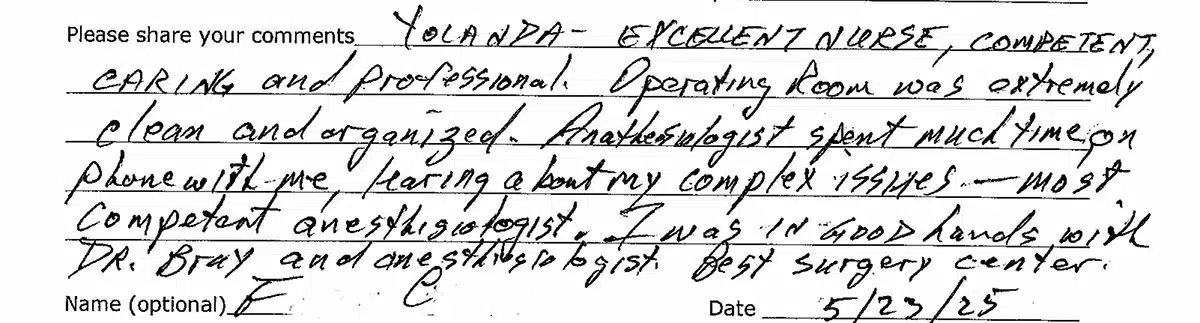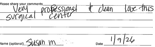 Below is a selection of testimonials from some of the happy patients at Ocean Surgery Center. Click on any picture to read the complete cards and lettters.